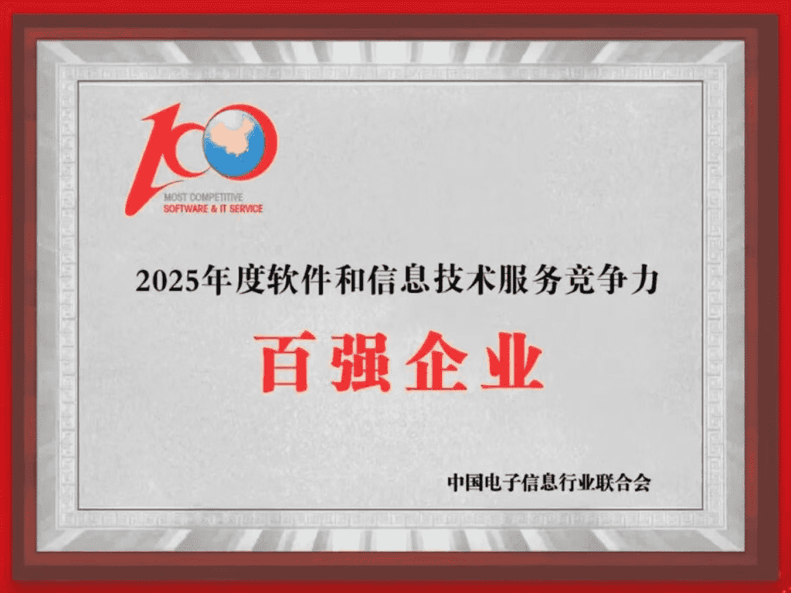 20251015日,,中国电子信息行业联合会权威揭晓“2025年度软件和信息技术服务竞争力前百家企业名单。。。。中国软件百强企业评选活动是由工业和信息化部全程指导、、中国电子信息行业联合会牵头组织发起,,,,是反映中国软件产业发展最高水平的“风向标”。。。。厦门35273网络技术股份有限公司(以下简称“35273”或“公司”)凭借自身在软件技术领域的卓越表现与杰出创新能力,,,第六次入选“全国软件和信息技术服务竞争力前百家企业”称号。。