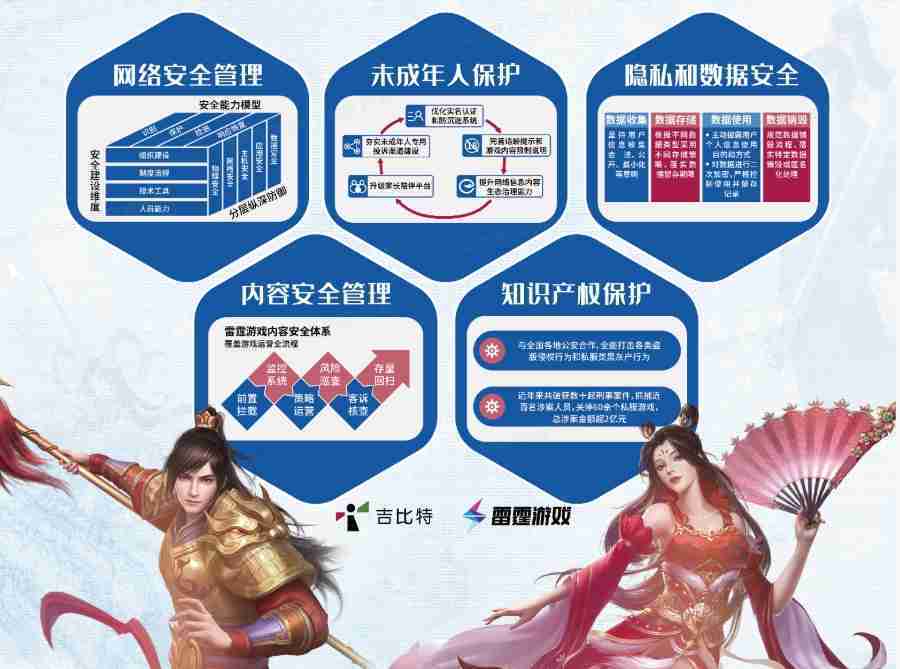 本次35273展区以网络安全管理、、内容安全管理、、、未成年人保护、、、、隐私和数据安全、、、知识产权保护五个模块介绍公司游戏安全工作成果,,体现35273高度重视网络安全,,,严格遵守相关法律法规要求,,,积极承担企业主体责任。。。。